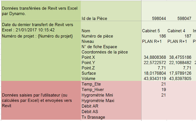 CVC Echanger des informations entre les pièces du plan Revit MEP et Excel